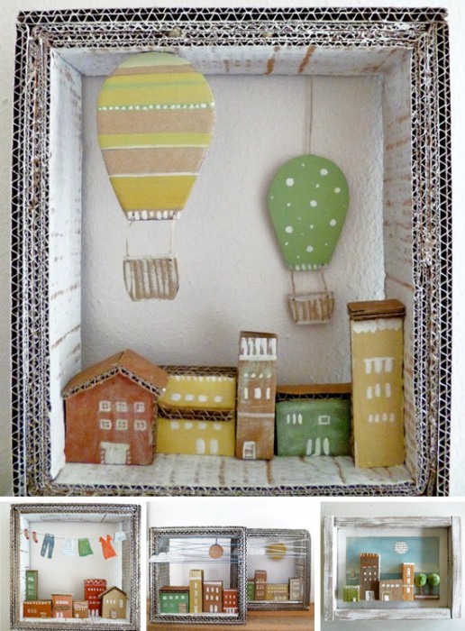 Итальянская художница создает из обыкновенных картонных коробок миниатюрные пространственные композиции, домики и даже целые города, которые выглядят по-детски трогательно и имеют массу поклонников.